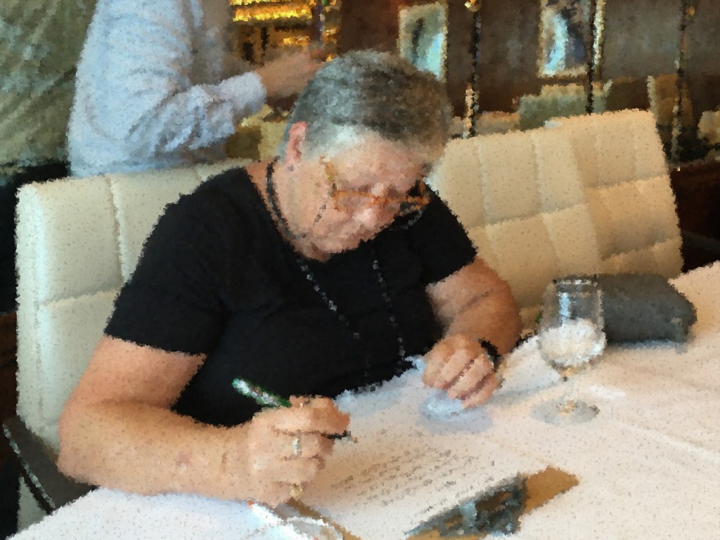 We had breakfast with a woman from New England. We asked her if she could tell us a funny story. Like all the people whose images we use, she signed our Media Release Form.